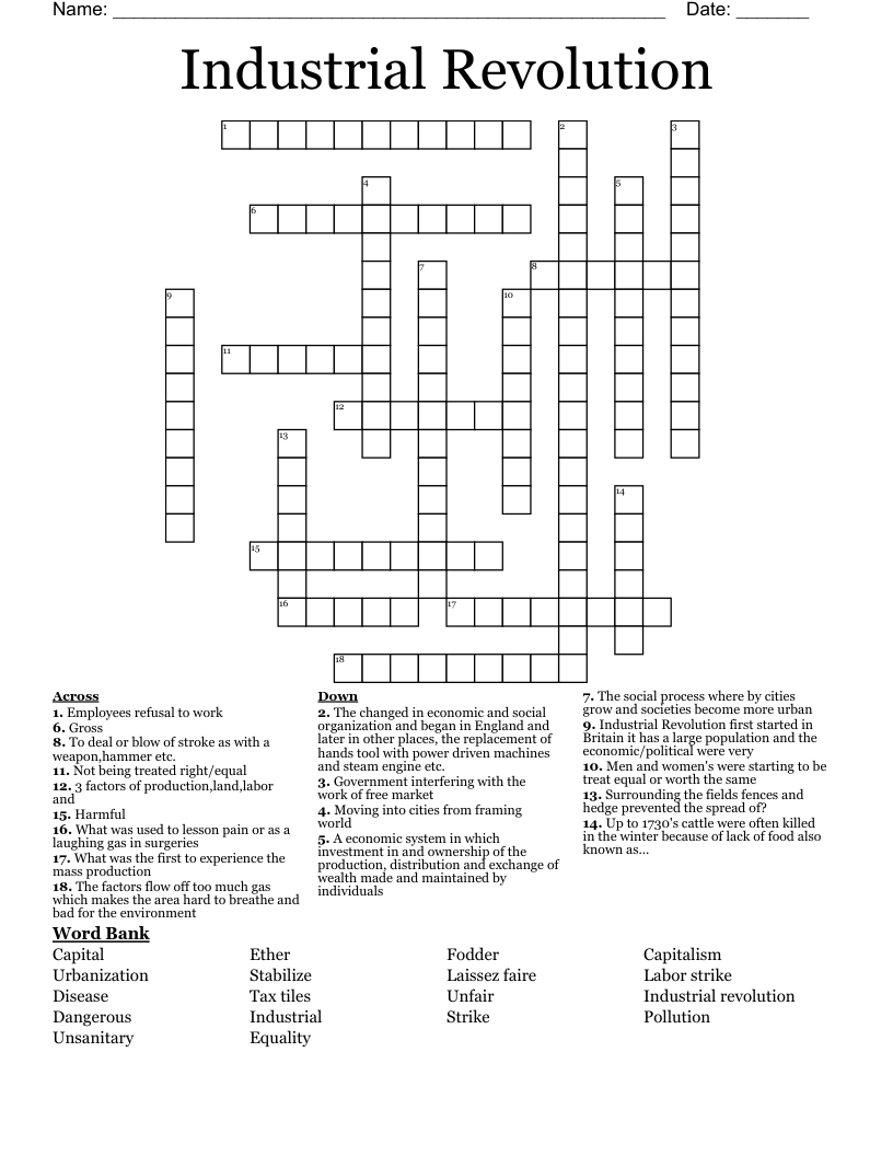 The Industrial Revolution Crossword WordMint Industrial Revolution Crossword Key Print, save as a pdf or word doc. Search for crossword clues found in the daily celebrity,. Download and print this industrial revolution crossword puzzle. Pdf will include puzzle sheet and the answer key. Economic activity concerned with the. Process in which major technological advances were made from about 1750 to the 1900's. We will try to find the right. Industrial Revolution Crossword Key.