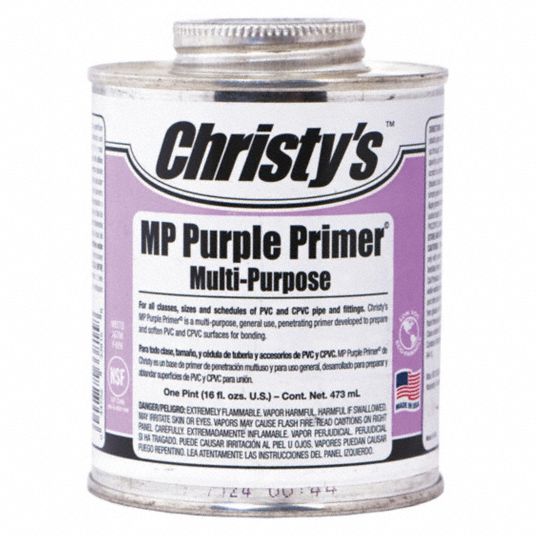 CHRISTY'S Purple Primer, Multi Purpose, Size 16 oz, For Use With CPVC Purple Primer Pvc Purpose Primer also softens the pvc surface so the cement will be able to bond two pvc surfaces tightly. Oatey’s industrial grade clear primer is a more aggressive primer applicable for commercial and large diameter thermoplastic piping systems. The color of pvc primer is typically vibrant, such as purple or red, making it easy to see where it has been applied.. Purple Primer Pvc Purpose.