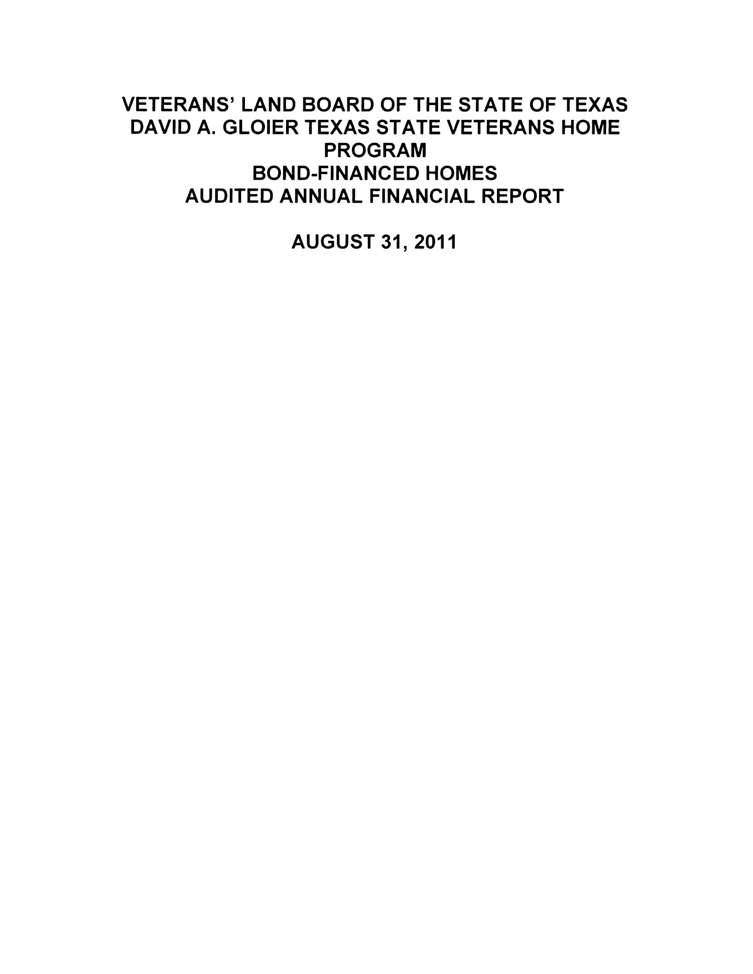 Texas Veterans' Land Board and Veterans Home Program Annual Financial