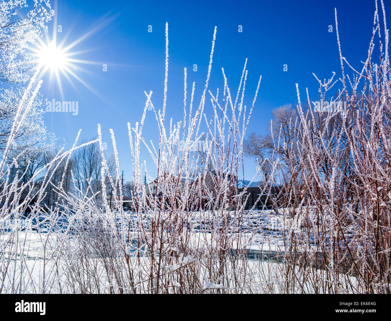 Ice coated Cottonwood trees along Arkansas RIver which runs through the