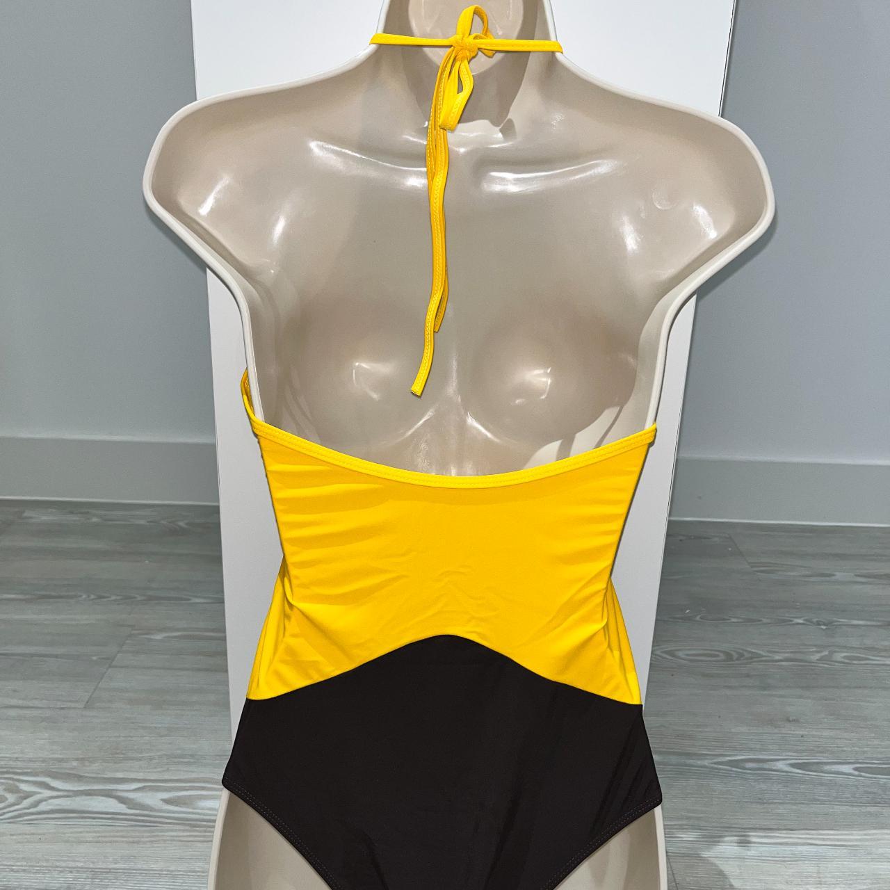 Yellow and brown one piece women's swimsuit.... Depop