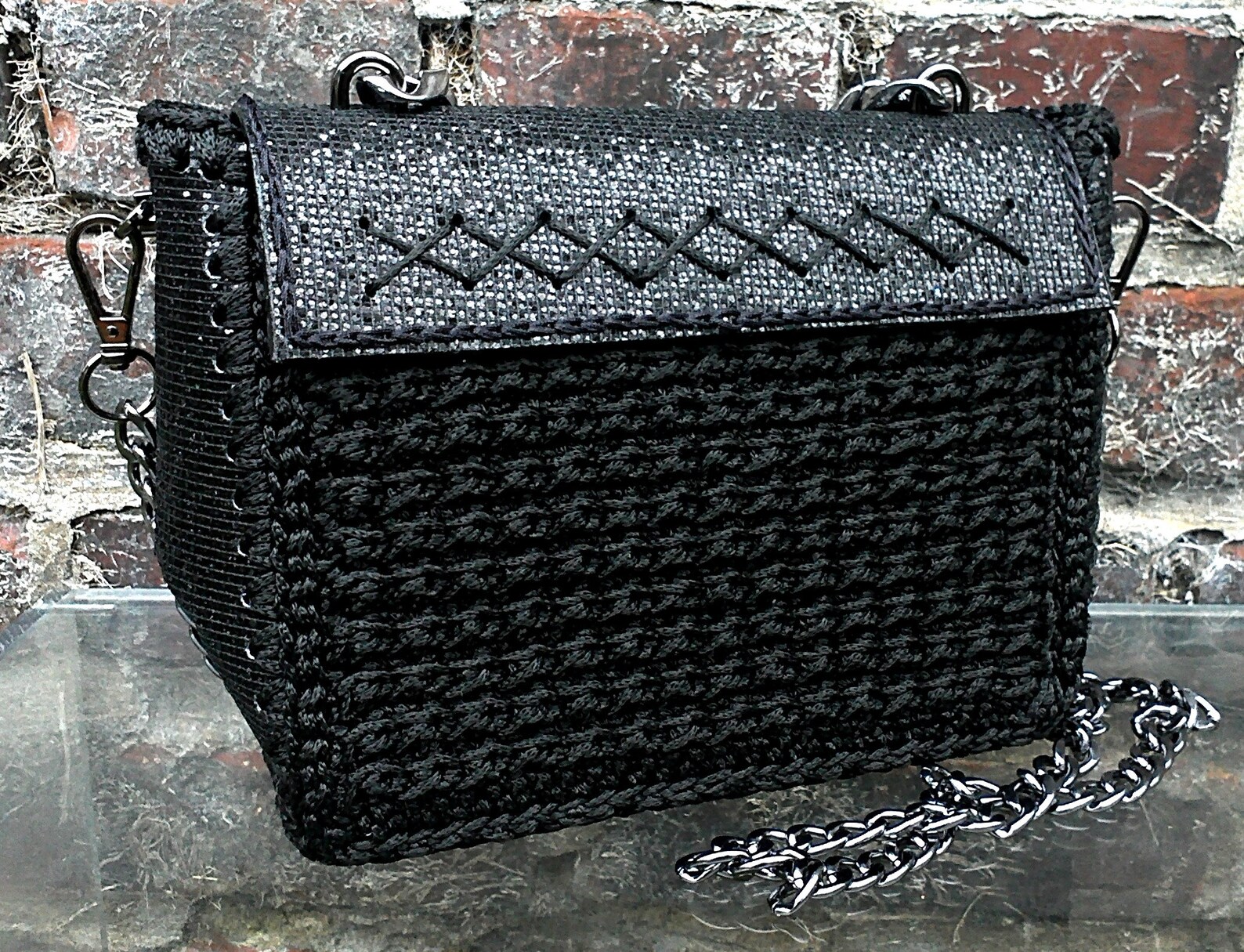 Small black evening bag with massive chain.Shiny clutch with Etsy