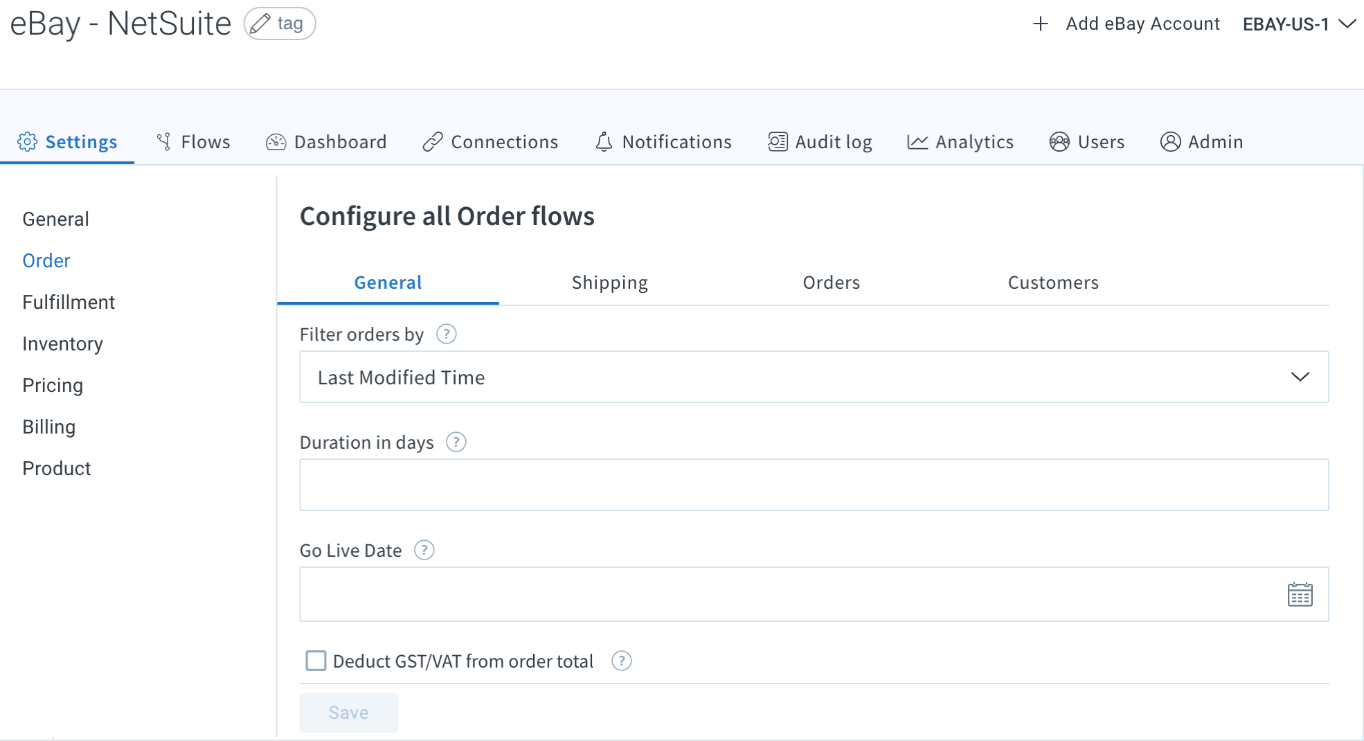 Configure eBay order flow settings Celigo Help Center