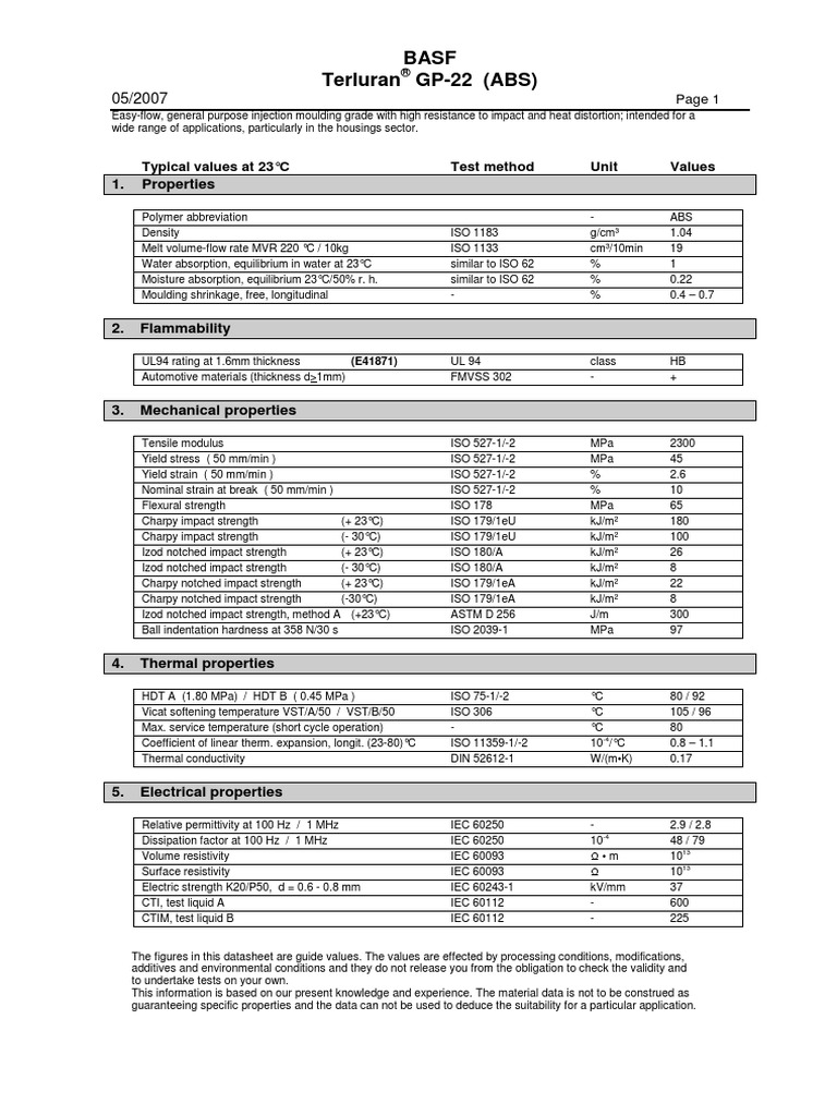 Abs ( Basf Terluran Gp22 ) Strength Of Materials Solid Mechanics Abs Plastic Material Data Sheet ultimaker abs is specifically formulated to minimize warping and ensure consistent interlayer adhesion. abs is a low cost plastic material with outstanding impact resistance, machinability, and thermoforming. acrylonitrile butadiene styrene (abs) is the polymerization of acrylonitrile, butadiene, and styrene monomers. acrylonitrile butadiene styrene (abs) is the polymerization of acrylonitrile, butadiene, and styrene monomers. Abs Plastic Material Data Sheet.