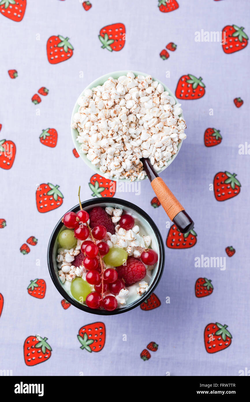 Yoghurt with puffed buckwheat and fruits Stock Photo Alamy