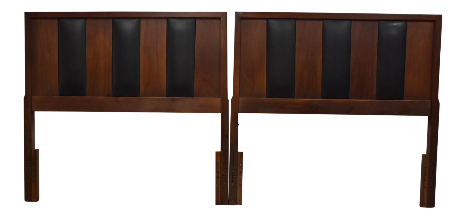 Walnut & Black Vinyl Twin Headboards a Pair Chairish