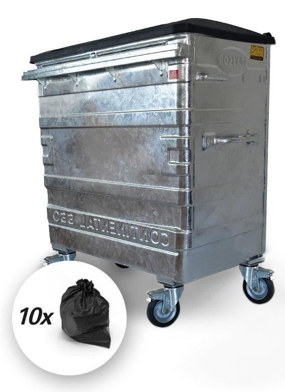 Wheelie Bins DREYMAR Metal Wheelie Bins For Sale Shop now at bin factory outlet! We supply a wide range of large metal bins for trade & commercial customers with free delivery. Made from hot dip galvanised steel to ensure protection against corrosion. Our continental 1100 litre metal wheelie bin is available with a drop front, fork lift attachments and side lifting points. Sizes from 500l to 1280l. 240. Metal Wheelie Bins For Sale.