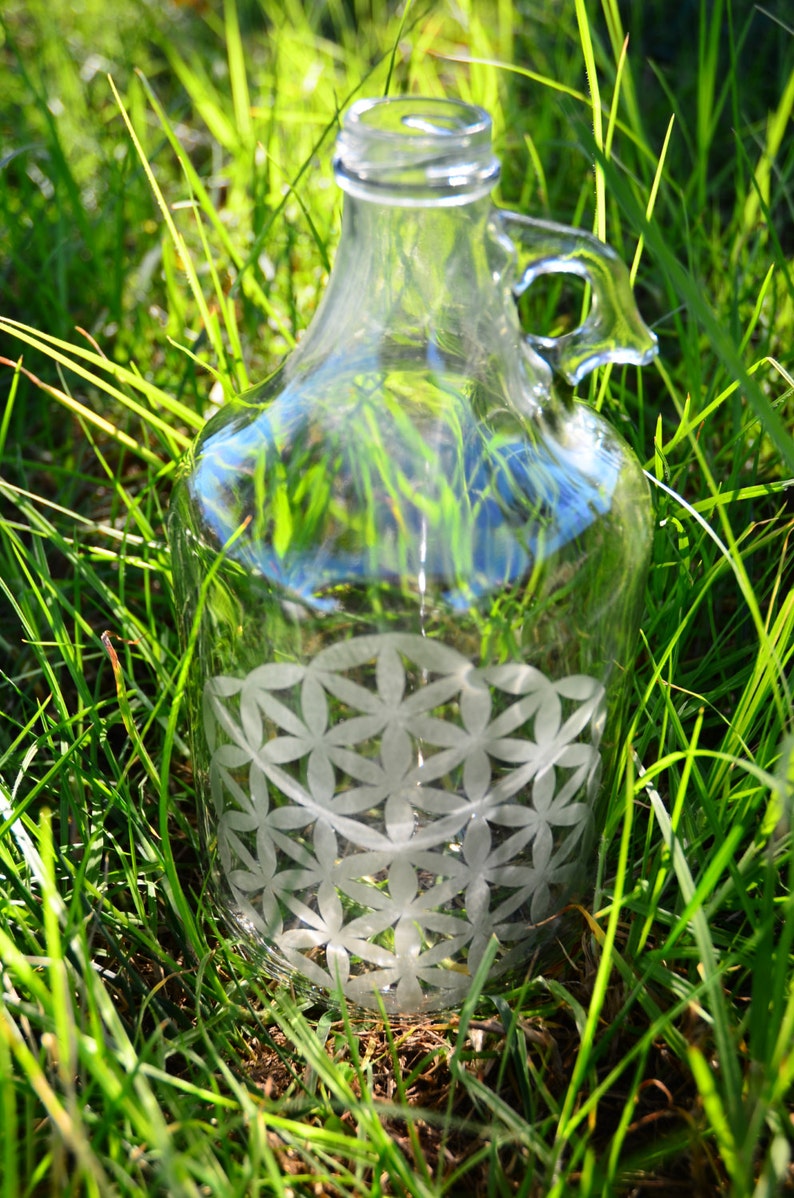 Flower of Life Etched Glass Jug 1/2 Gallon Growler Sacred Etsy
