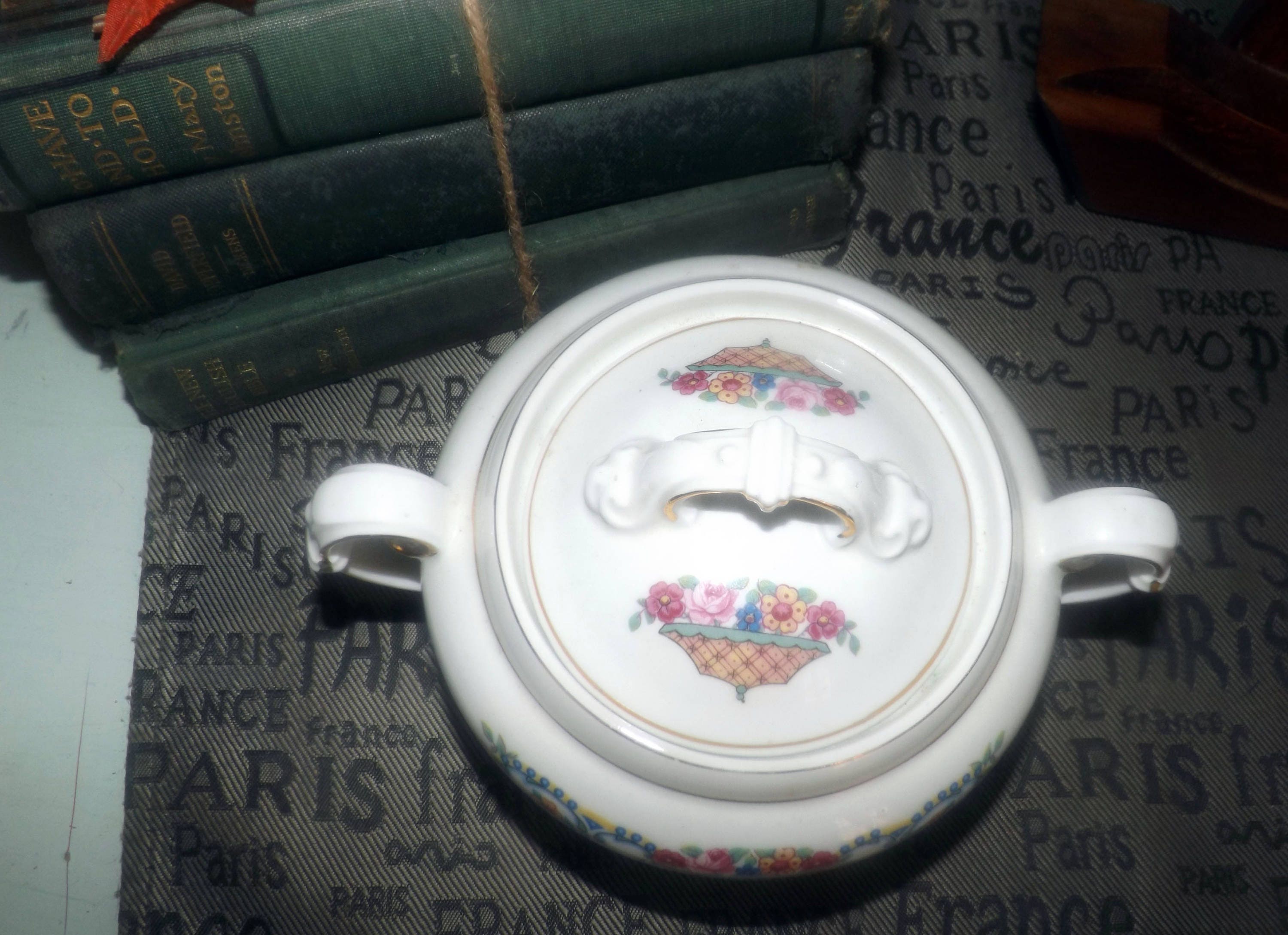 Vintage art deco (1930s) Victoria China 264 covered sugar bowl. Flowers