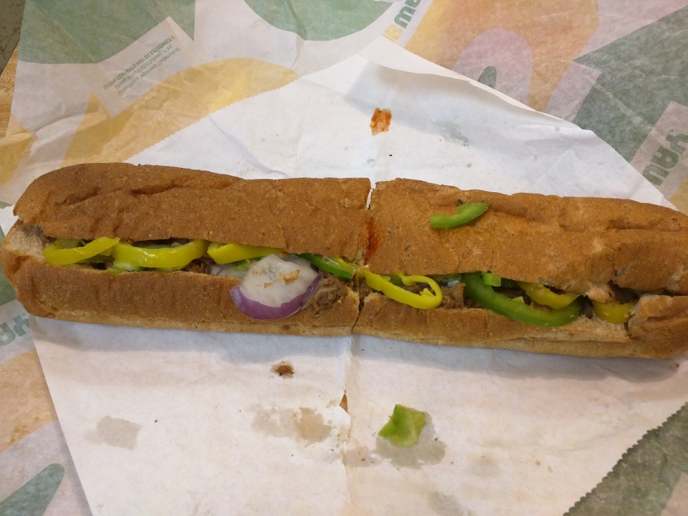Yeah I Ate That Subway in Plainville CT Steak and cheese on wheat American, onions, peppers