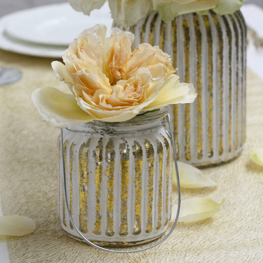 Elegant White And Gold Striped Vase Tea Light By The Wedding of my Dreams