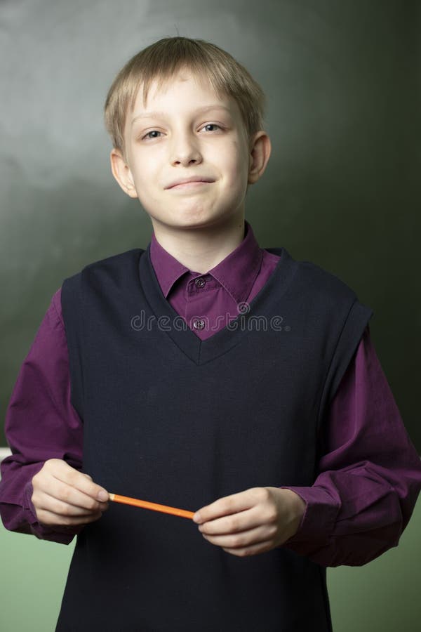 Portrait of a Schoolboy at the Blackboard Stock Image Image of cute