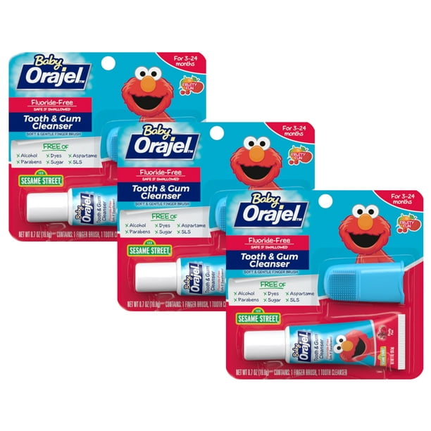3 Pack Baby Orajel Tooth And Gum Cleanser Fruit Flavor 0.7oz Each