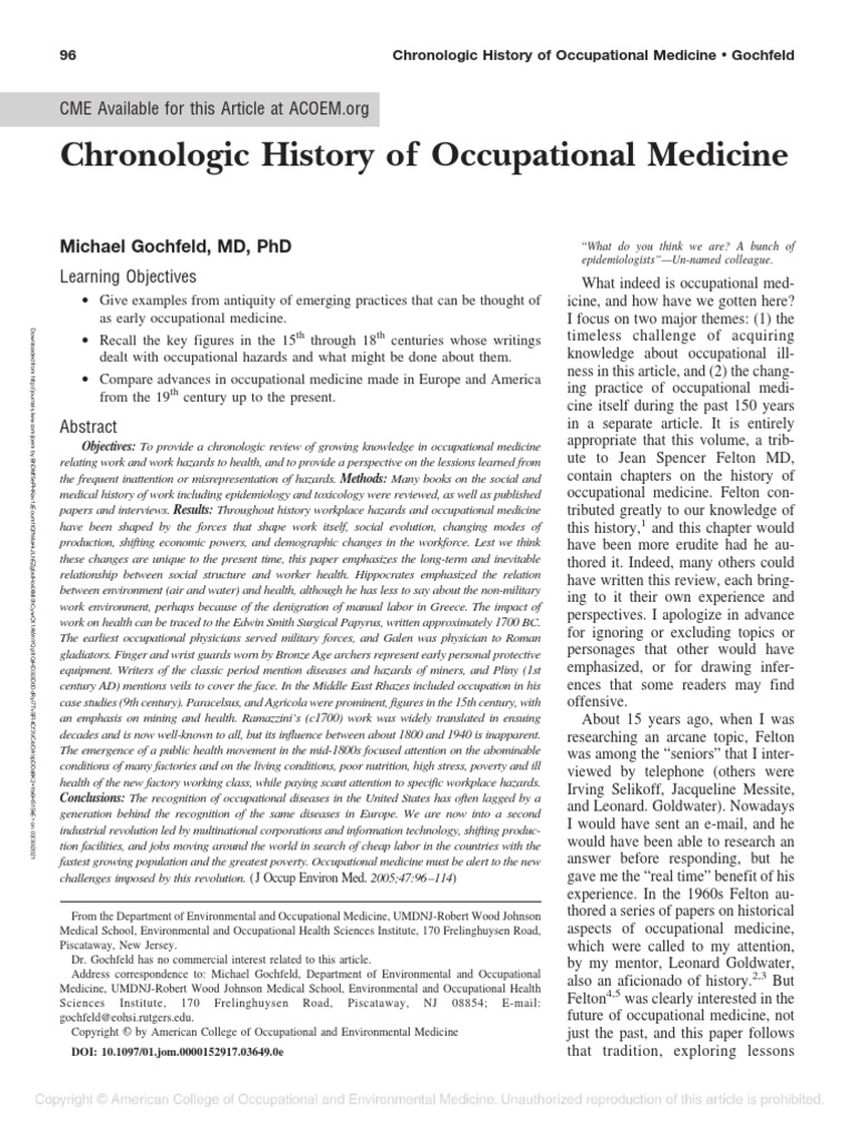 History of Occupational Medicine PDF Medicine Wellness