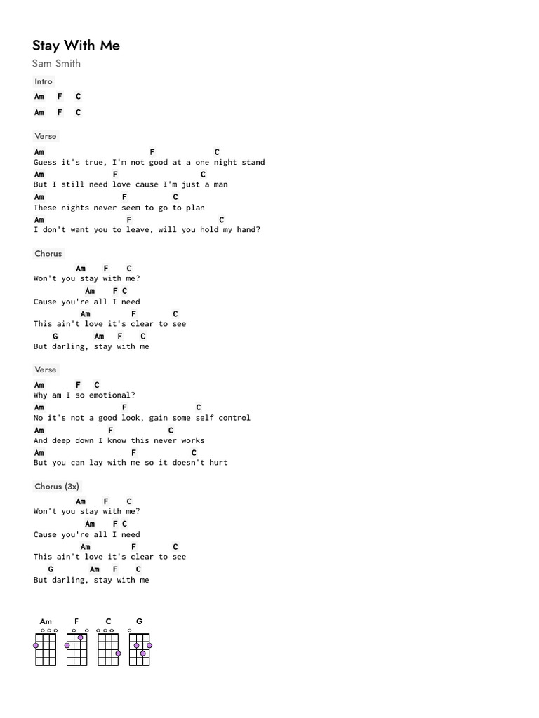 Stay With Me by Sam Smith Ukulele Chords UkeBuddy PDF
