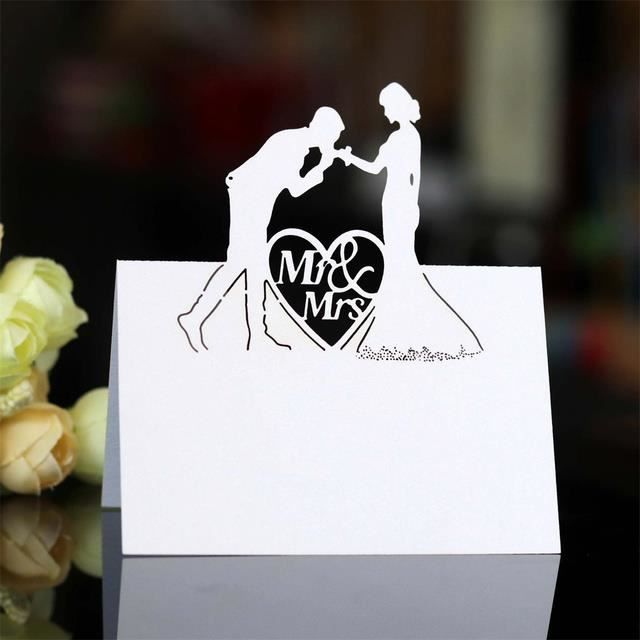 Carte d'invitation,7Cartes avec nom en dentelle blanche, 50 pièces