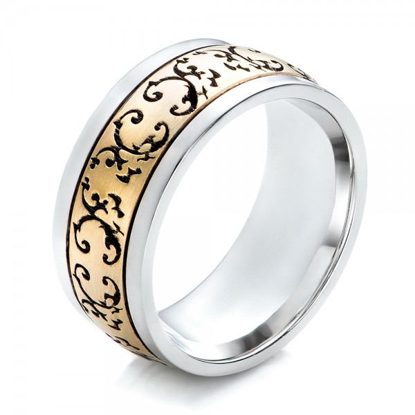 Ladies Wide Two Tone Scroll Wedding Band in 14k Yellow and White Gold Wedding Band Two Tone On the day you say i do, present him with a sophisticated. Check out our 2 tone wedding rings selection for the very best in unique or custom, handmade pieces from our wedding bands shops. Choose from a variety of styles, metals and more today. Sign up for updateslifetime warranty A dynamic hammered trim wraps around the center of this. Wedding Band Two Tone.