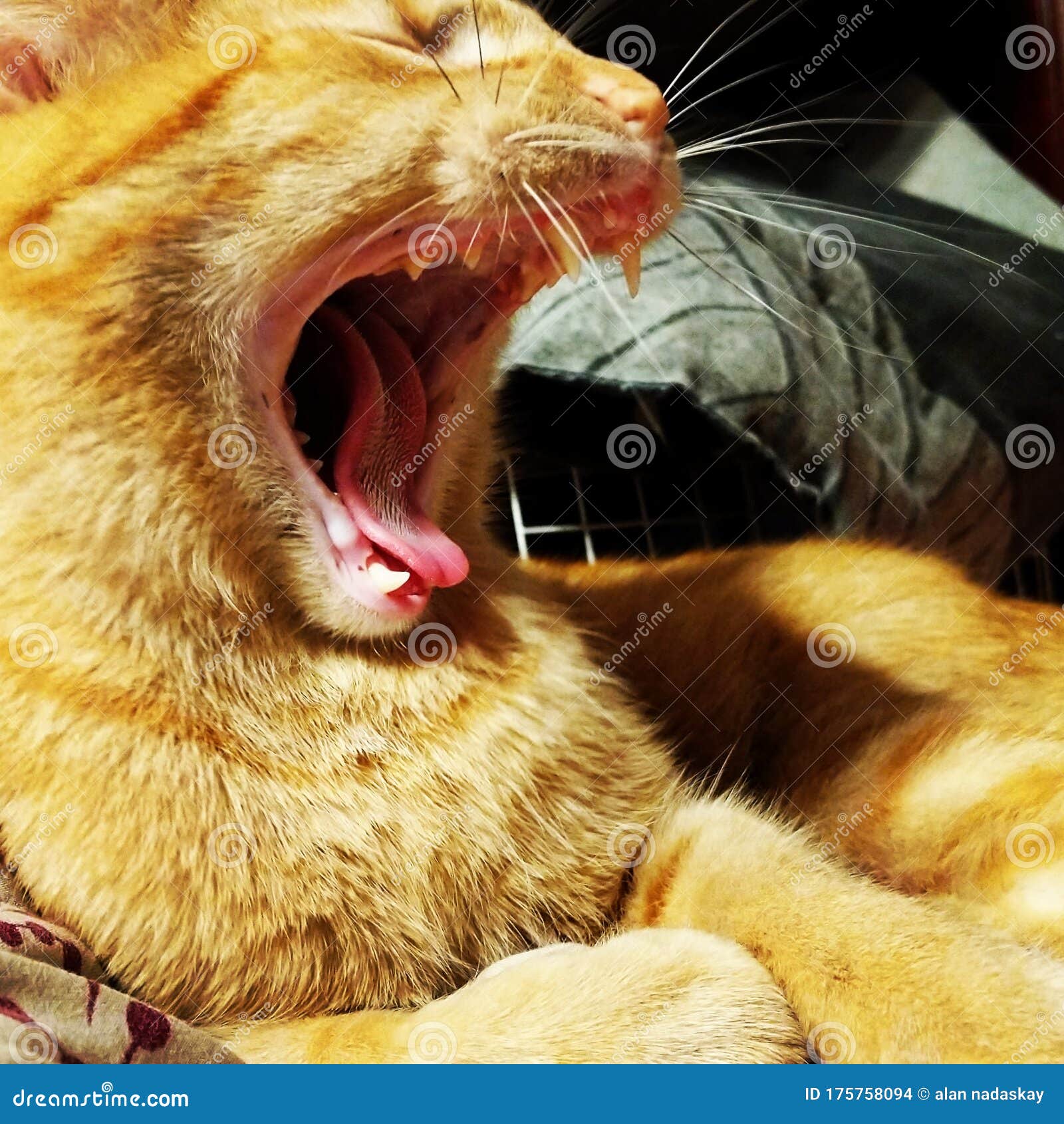 Yawning orange cat stock photo. Image of yawning, fangs 175758094