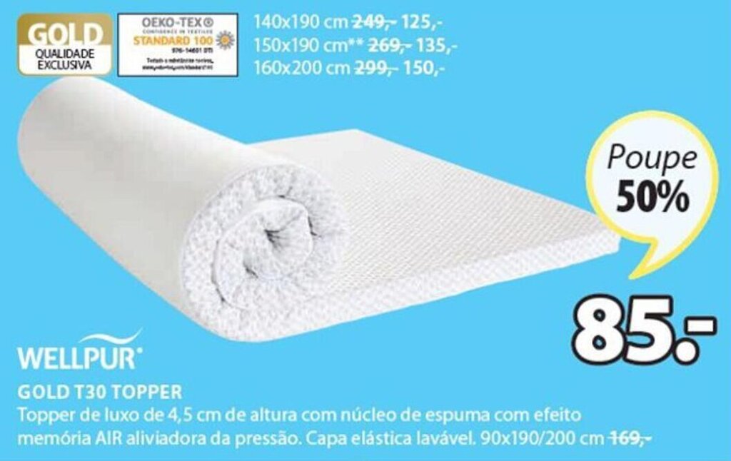 Promoção Wellpur Gold T30 Topper 90 x 190 / 200cm em JYSK