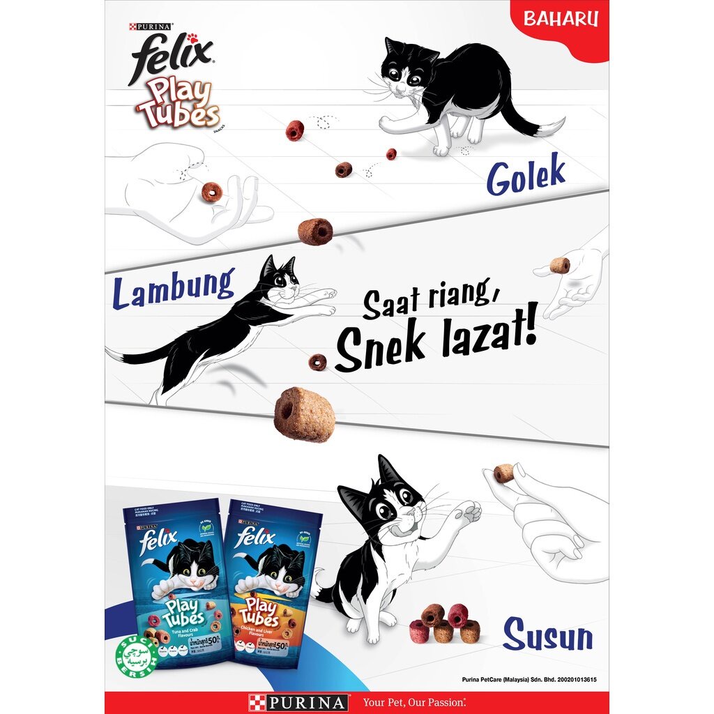 Pro Plan Cat Chicken x 2EA + Felix Play Tubes Chicken & Liver Felix Play Tubes Chicken And Liver Felix play tubes are a tasty occasion to share a daily moment of bonding and fun together! Supervise your cat when giving him/her the treats. Irresistibly playful thanks to their unique rolling shape, dual flavours, different sizes and tastiness of felix® treats that your cat knows and loves. Irresistibly playful thanks to their unique rolling shape, dual flavours, different sizes. Felix Play Tubes Chicken And Liver.