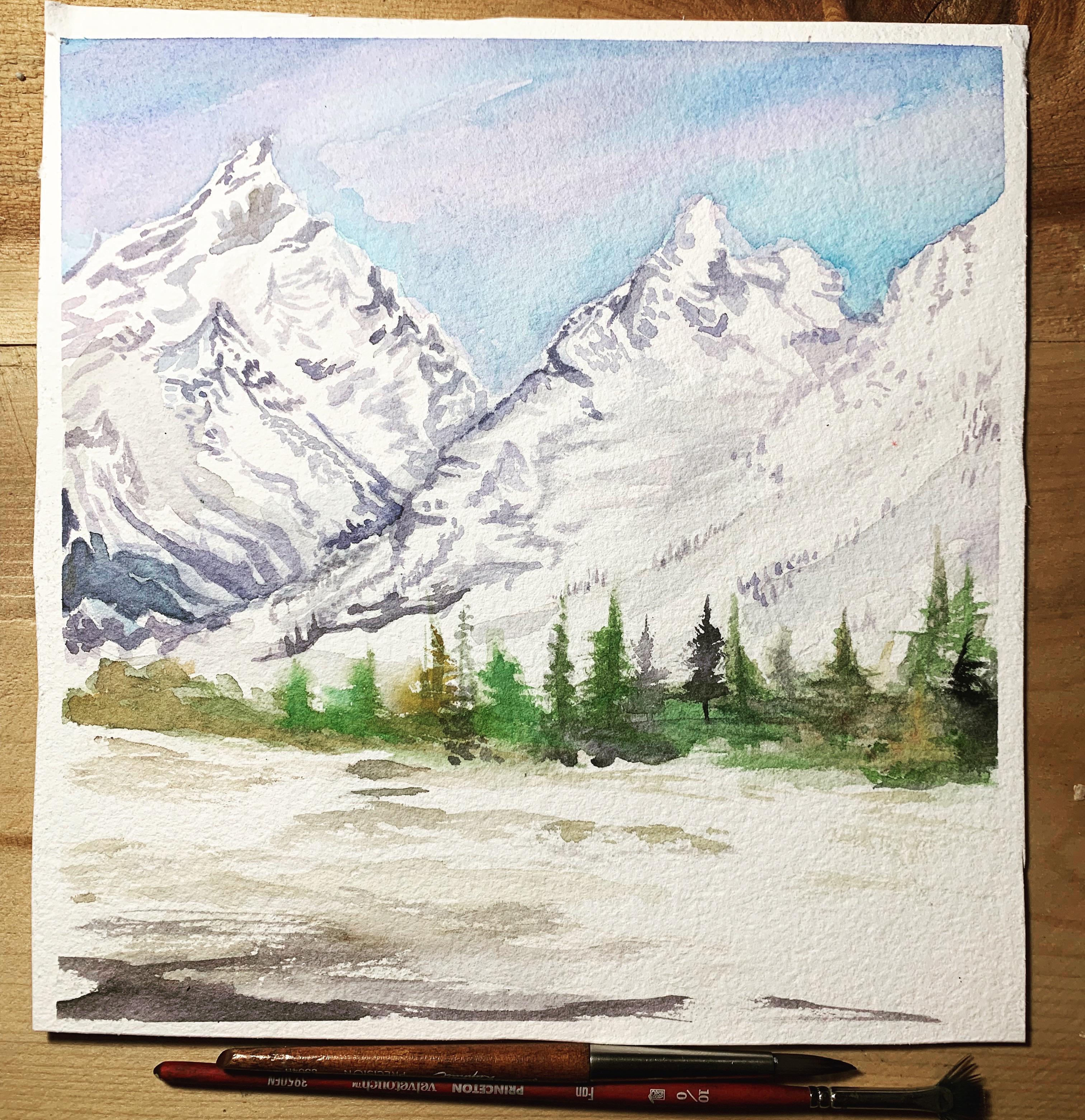 My attempt at painting mountains. r/Watercolor