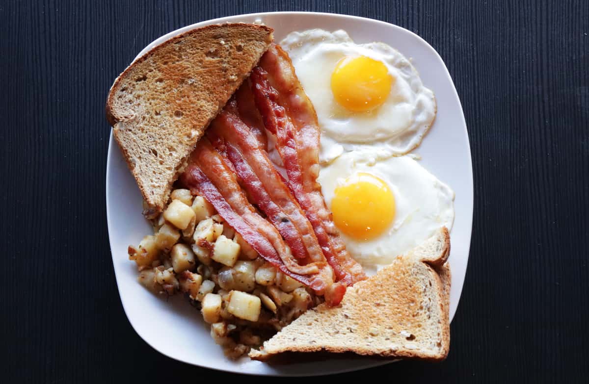 [Homemade] Sunday breakfast. Eggs, home fries, bacon, toast with Two Eggs And Toast Calories When the eggs are fried, the method of cooking does not. The macronutrient breakdown is 40% carbs, 34% fat, and 27%. The macronutrient breakdown is 22% carbs, 52% fat, and 25%. 1 serving of 2 x 2 eggs on toast contains 319 calories. the total calories in a breakfast of 2 eggs 2 bacon slices and 1 slice of. Two Eggs And Toast Calories.