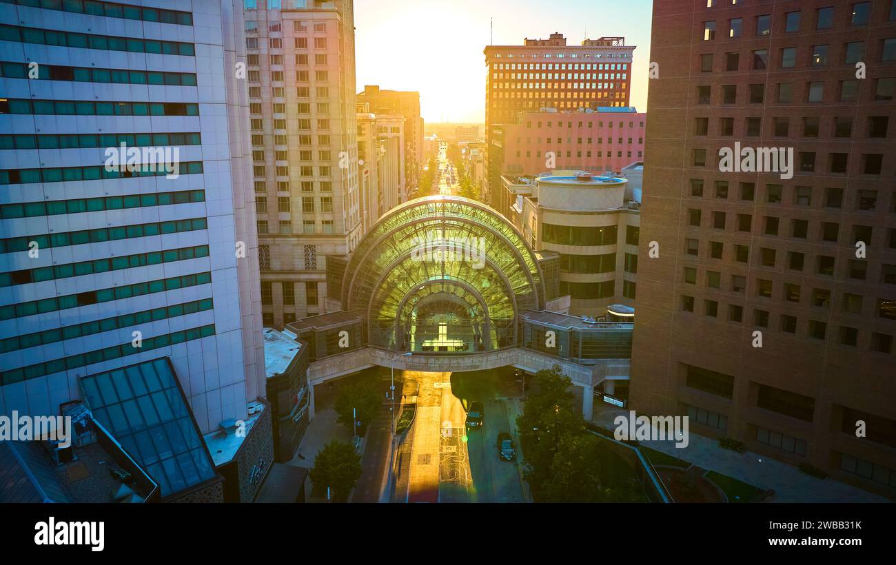 Aerial Golden Hour Over Indianapolis Keystone Mall Bridge and