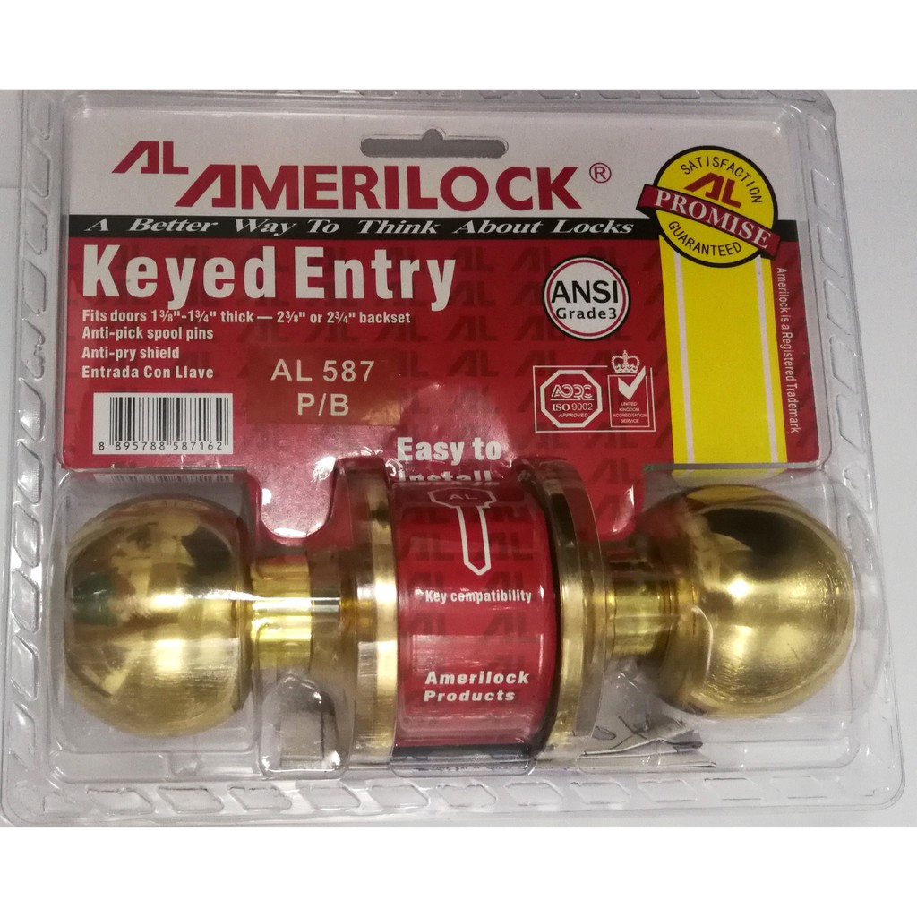 Amerilock Door knob. AL587 PB Keyed Entry. Polish Brass Shopee