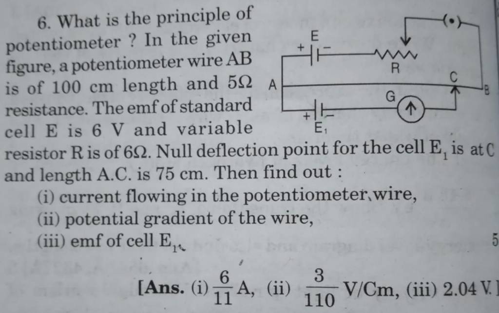 6. What is the principle of potentiometer ? In the given figure, a potent..