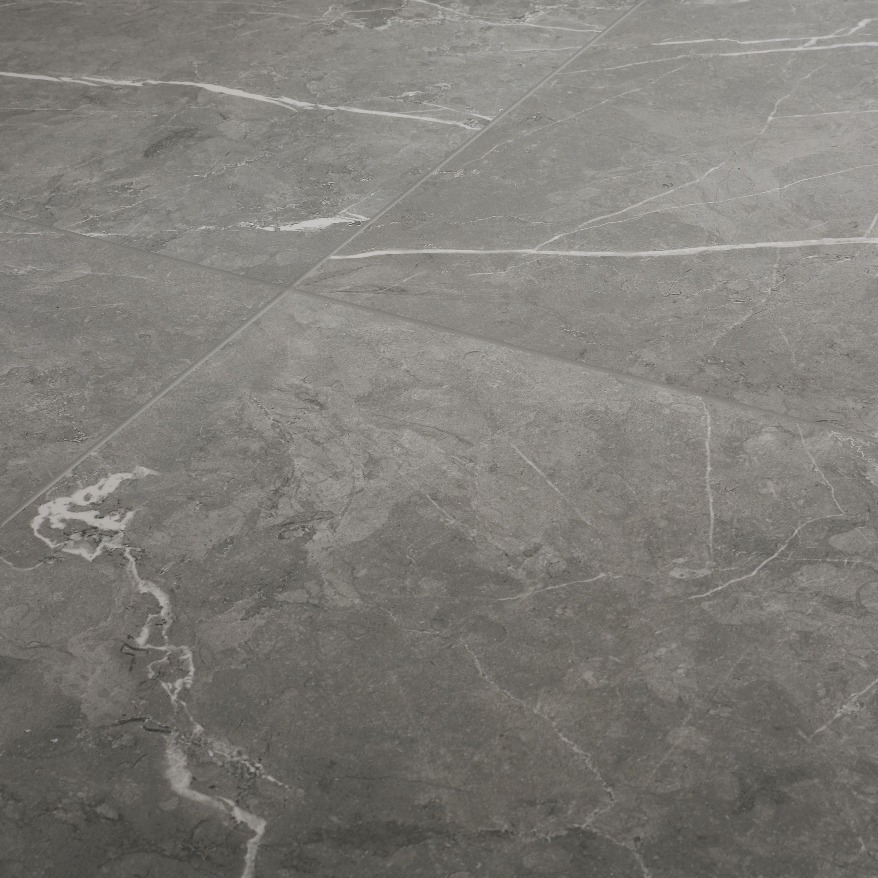 Ultimate Grey Matt Marble effect Porcelain Floor tile, Pack of 3, (L