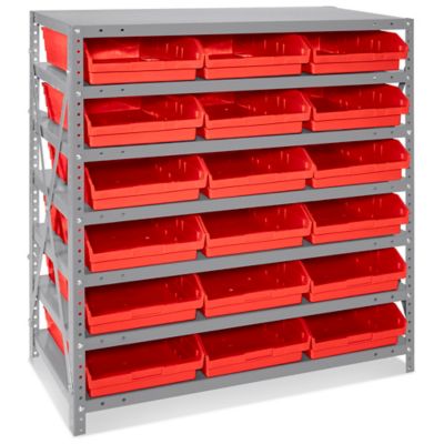 Shelf Bin Organizer 36 x 18 x 39" with 11 x 18 x 4" Red Bins H2646R