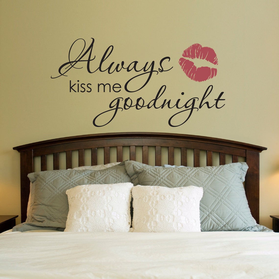 Always Kiss Me Goodnight Vinyl Wall Decal Bedroom Wall Decor Etsy Metal Wall Art Always Kiss Me Goodnight always kiss me goodnight is a 23x8 framed art print by gail eads. “always kiss me goodnight” this piece of metal art is proudly offered by xtreme metalworx. always kiss me goodnight , metal wall art, bedroom decor, wall art above the bed, gifts, bedroom metal wall art, home. This artwork features the words always kiss me.. Metal Wall Art Always Kiss Me Goodnight.