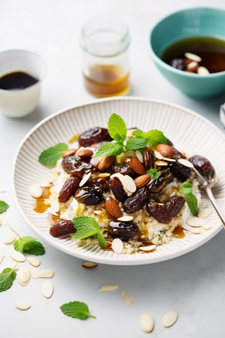Couscous Breakfast Bowl with Dates and Almonds Cooking Mediterranean
