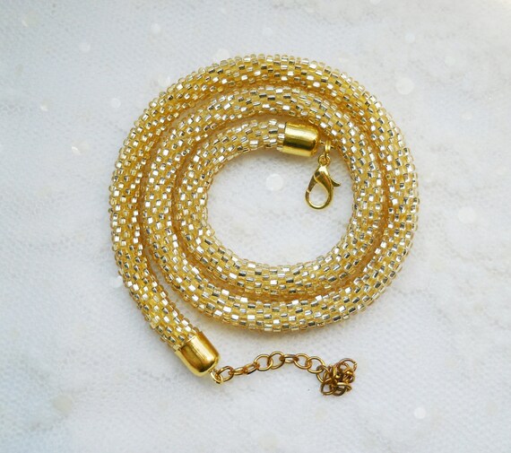 Golden Necklace Beaded Сrochet Rope Gold Bracelet Sparkling