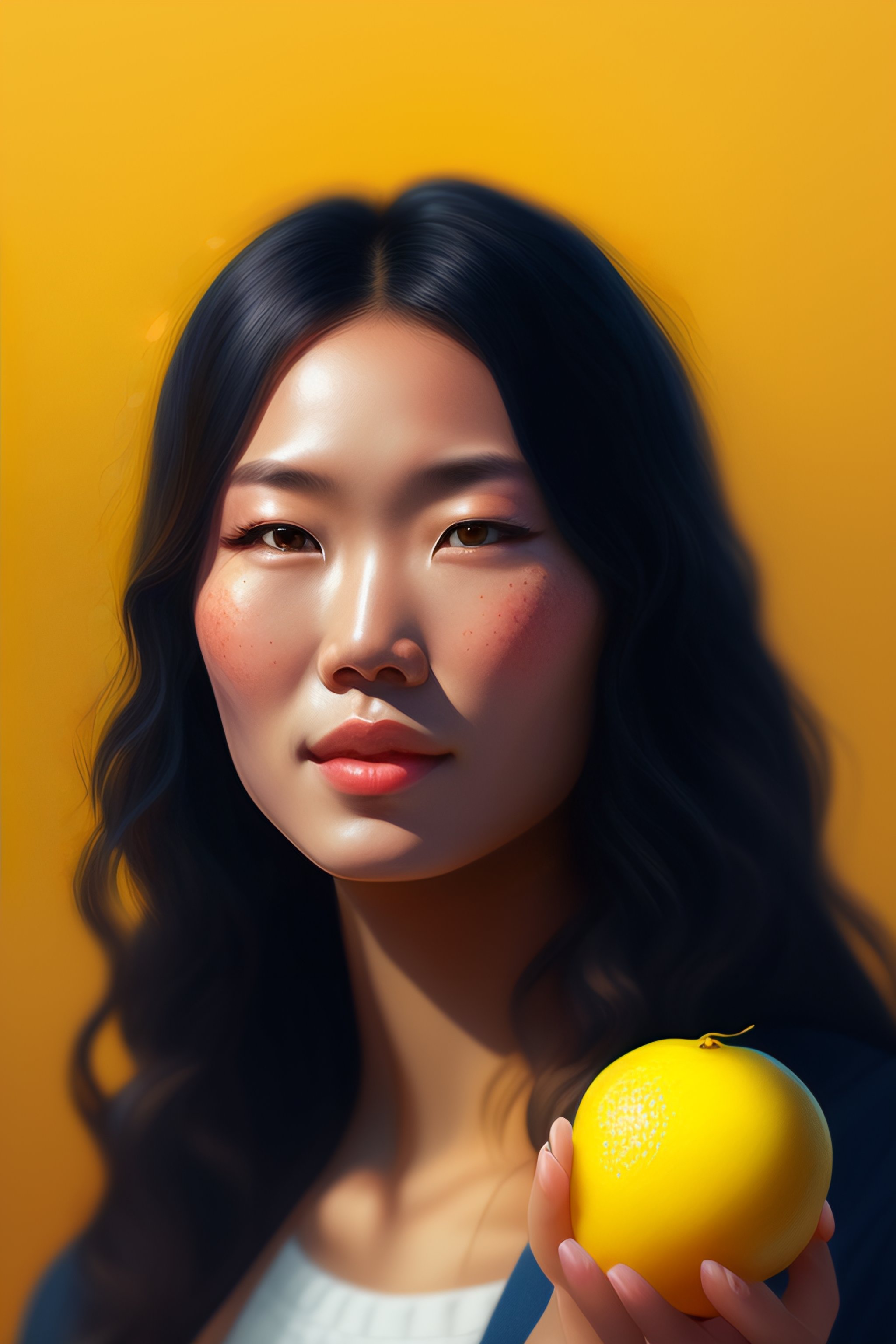 Lexica Half swedish and half japanese woman, holding a small lemon