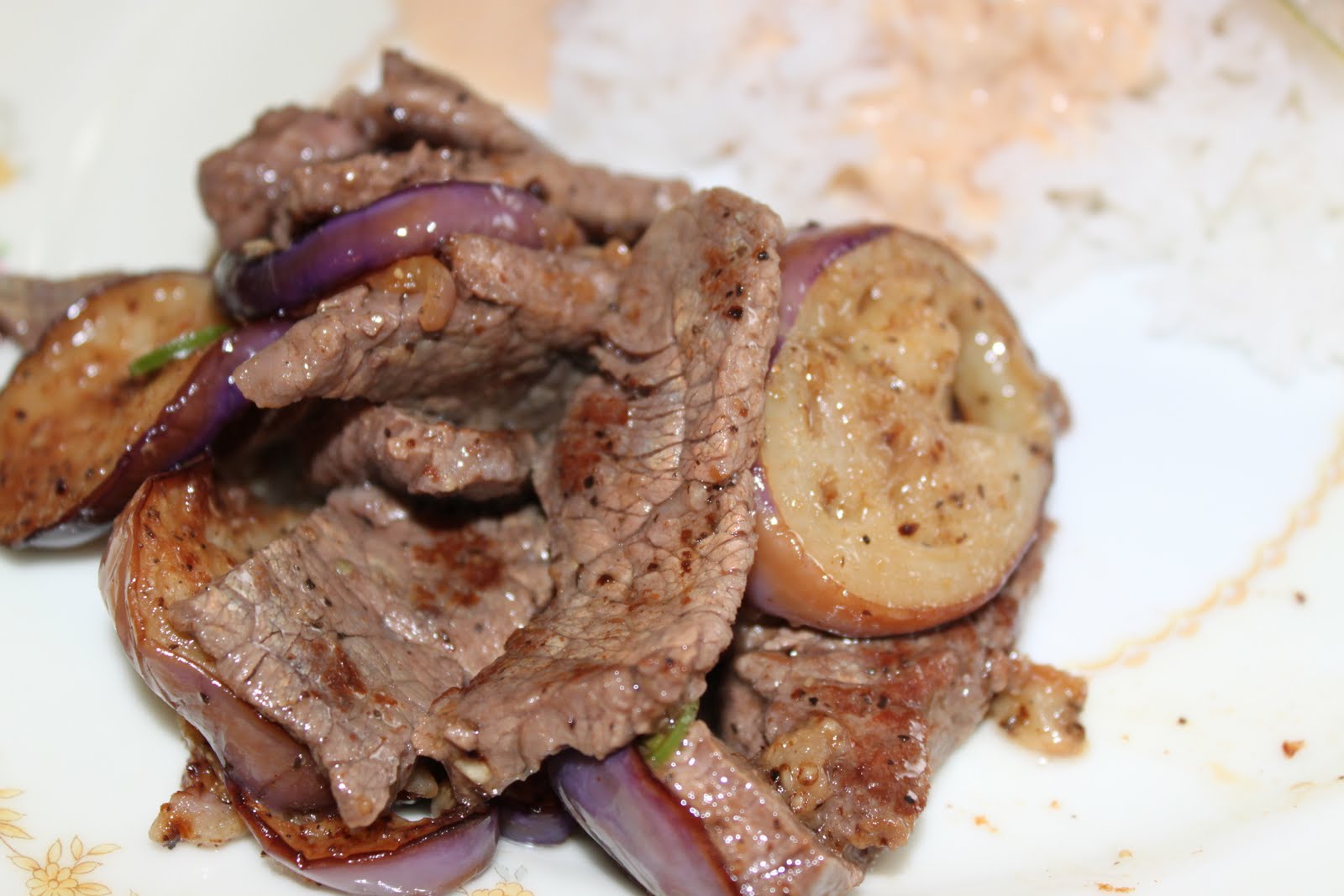 Once hot, add the sliced peppers and onion and cook for 1 to 2 minute on high heat, they should remain crunchy. Heat 1 tablespoon of oil in a wok or. Once oil is warm gradually add eggplant and fry, making sure to rotate the eggplant sticks so that it browns. Stir through the fish sauce and. Pound thin beef slices with a meat hammer to tenderize, and slice into desired sizes. Heat your wok over high heat, and add the oil. Remove on a plate lined with paper towel. Heat a large dutch over and add olive oil. Sear the beef until just. In small bowl, combine tamari, fish sauce, sugar and lime, mix well then set aside.