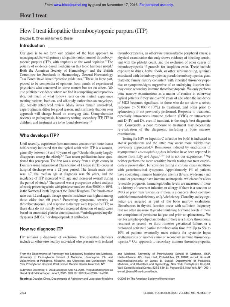 How I Treat ITP, Blood Journal AHS, 2005 Bleeding Health Care