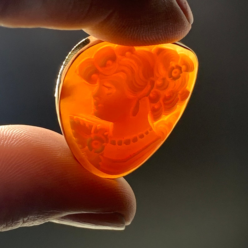 14K Yellow Gold Stamped Italy Designer Signed Carved Cameo Etsy