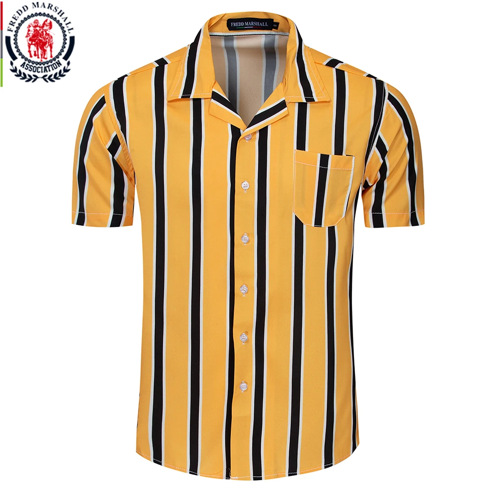 Fredd Marshall Casual Vertical Striped Shirt 2019 Fashion Men Slim Fit Short Sleeve Button Down