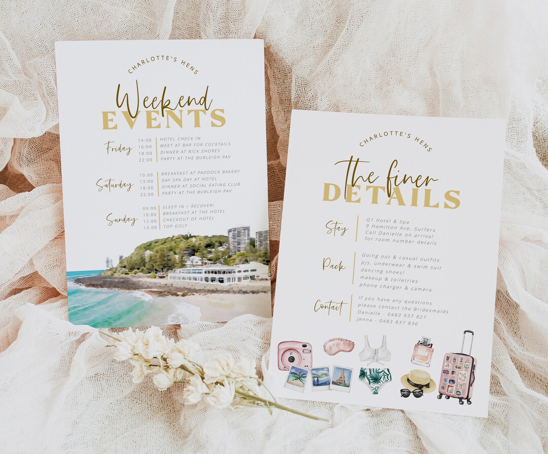 Gold Coast Hens Weekend Itinerary Template, Burleigh Beach Weekend Details, Bachelorette Weekend