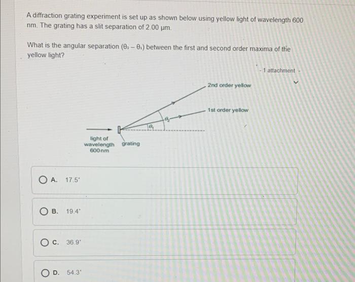 Solved A diffraction grating experiment is set up as shown Diffraction Grating Experiment Answers A student investigates the interference patterns produced by two different diffraction gratings. By the end of this section, you will be able to: One grating used was marked 100 slits / mm, and the other was marked 300 slits / mm. Experiment 9 diffraction gratings 1. How a diffraction grating works? N = the order of the diffraction pattern λ. Diffraction Grating Experiment Answers.