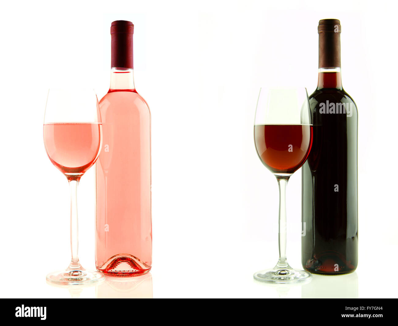 Bottle and glass of pink and red wine isolated Stock Photo Alamy