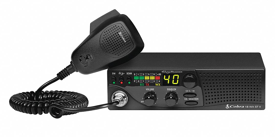 COBRA CB Radio, Weather Band, LED, Green 33UG0618 WX ST II Grainger