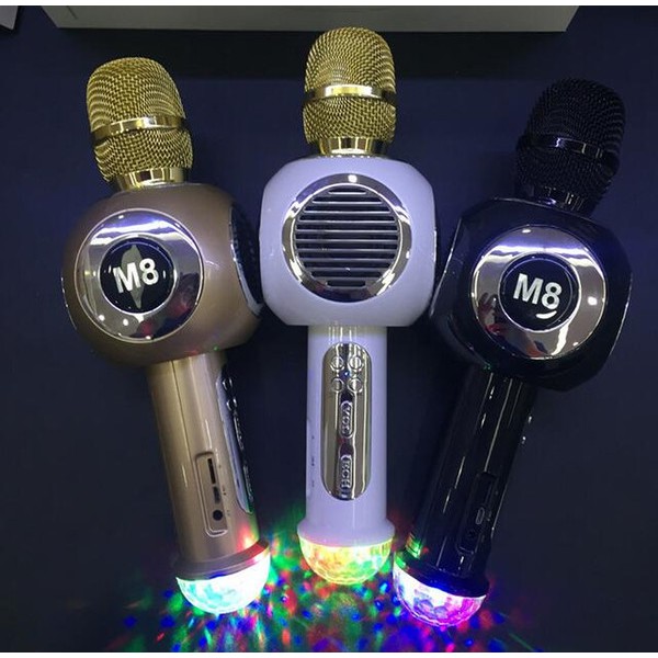 LED LIGHT!!Karaoke Speaker Wireless Microphone M8(ready stock) Shopee