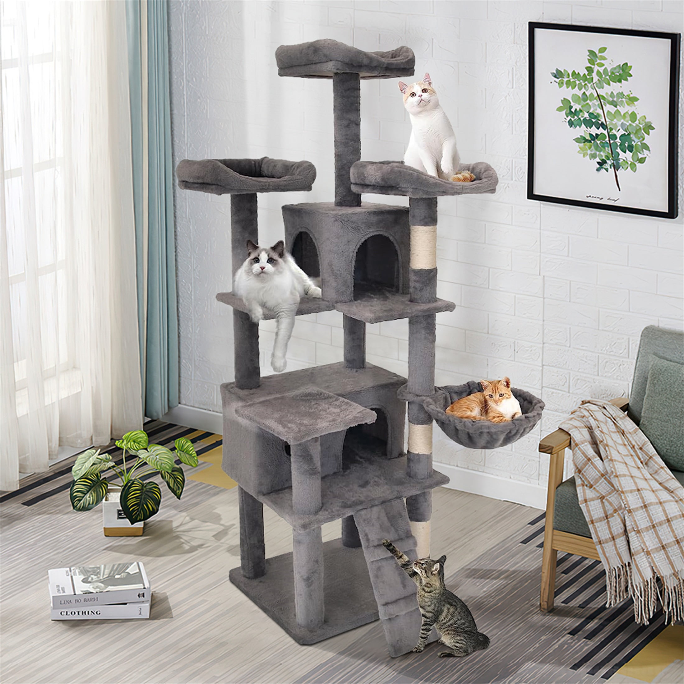 New Cat Condos 71 in. Solid Wood 5 Level Large Cat Tree Tower Walmart Wooden Tower Cat Tree Contains beds, houses, scratching posts, and more. Floor levelers and support bar provided for added stability;. modern cat tree tower for large cats with seasonal universal mat, wood cat tree indoor use, real branch luxury cat condo. the milo cat tower does everything, and that's why it's our pick for best overall cat tree. wooden cat tree. Wooden Tower Cat Tree.