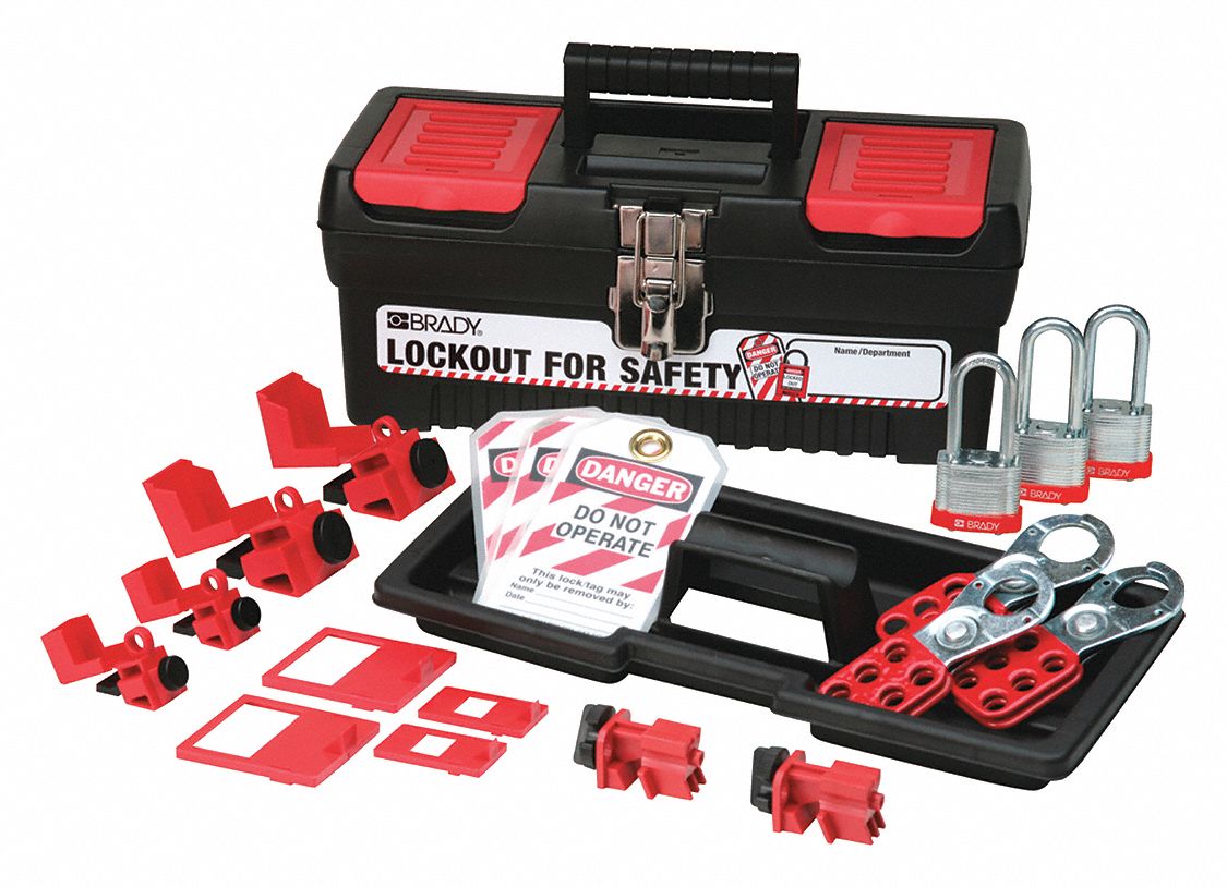 BRADY Portable Lockout Kit, Filled, Electrical Lockout, Tool Box, Black 15Y561105965 Grainger