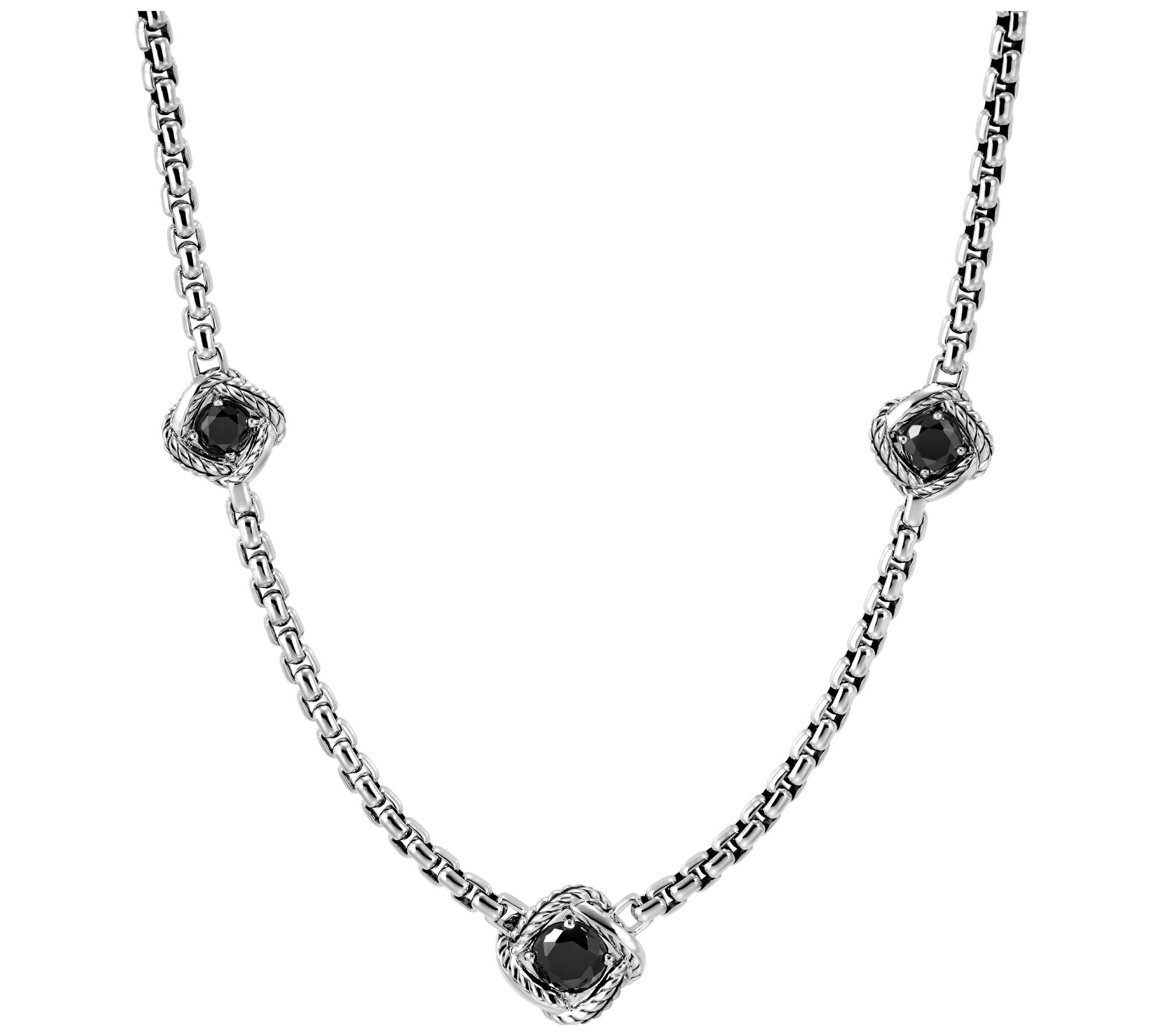 JAI Sterling Silver Twisted Knot Black Spinel Station Necklace
