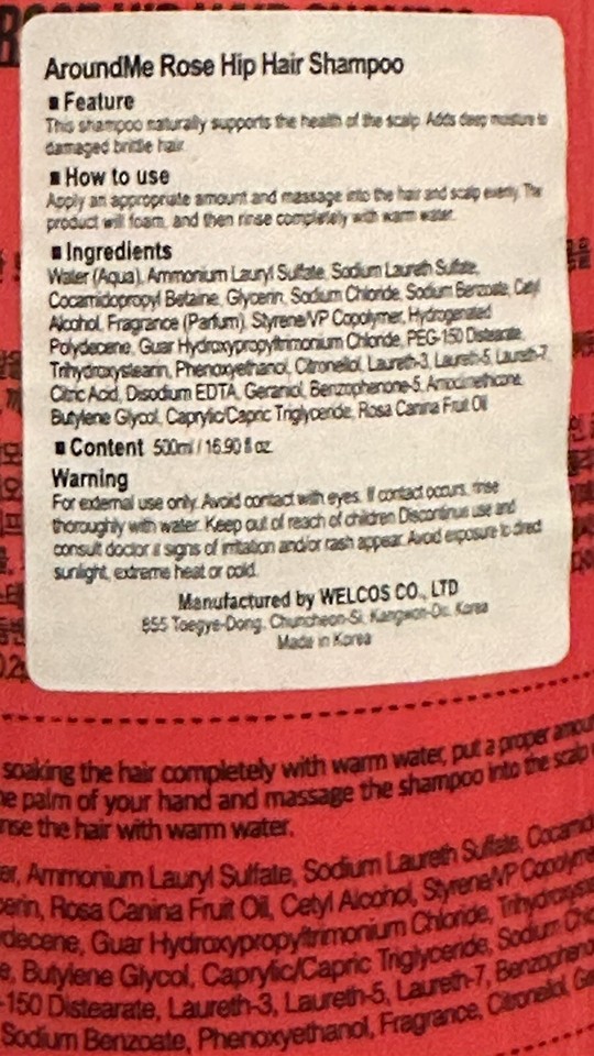 Around Me Rose Hip Hair Shampoo w/ Vitamins 500ml Flower Scented