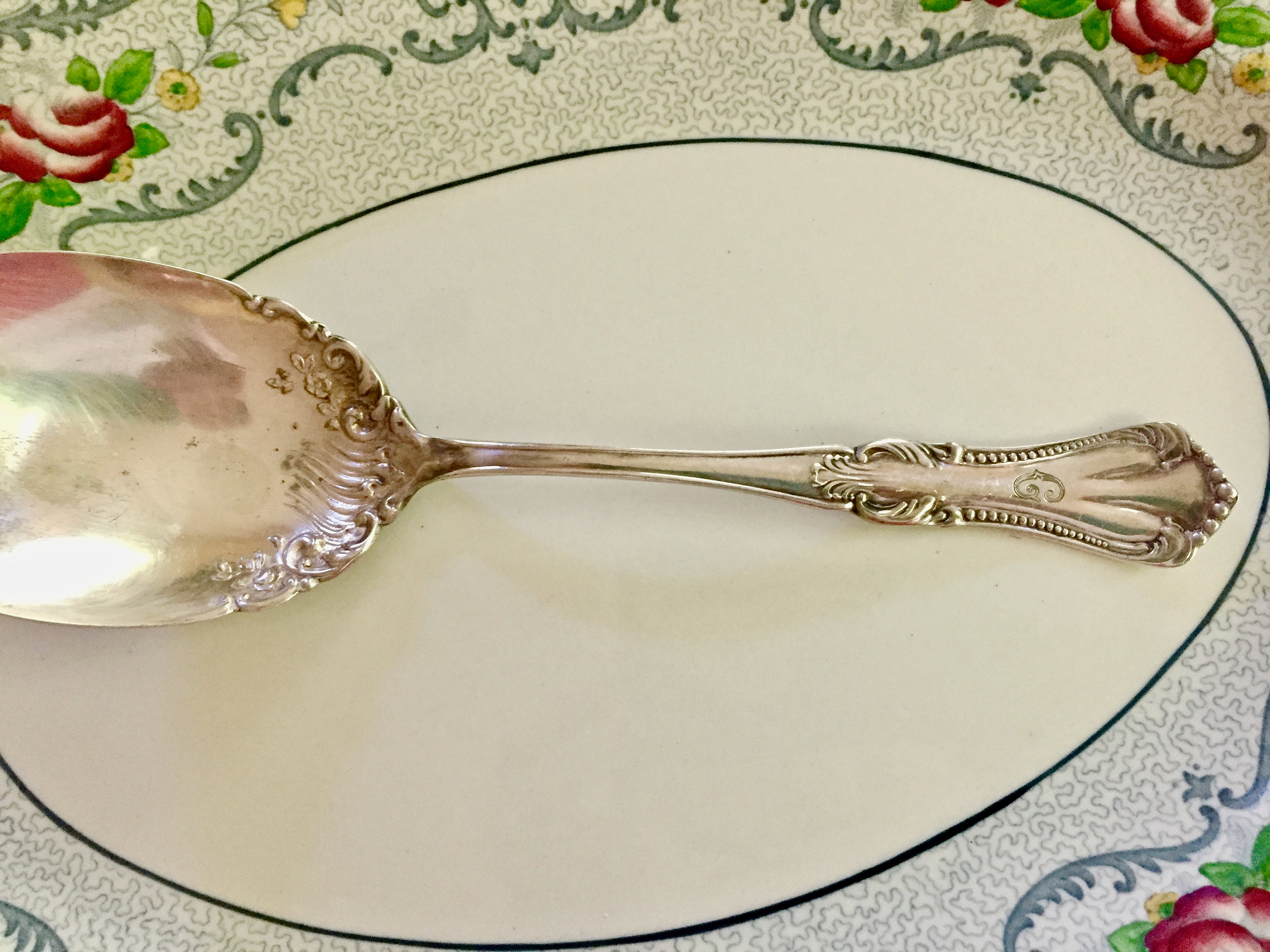 Antique Silver Casserole Spoon, 1905 Rogers Marcella Pattern, Monogram
