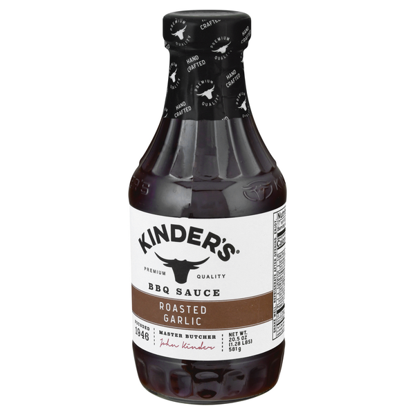 Save on Kinder's BBQ Sauce Roasted Garlic Order Online Delivery Giant Kinder's Roasted Garlic Bbq Sauce No longer do you have to make a choice between two of your favorite sauces, we've combined the best of both worlds for you in one bottle. Of course it’s great on barbecue, and it can also take the place of ketchup with anything from fries to meatloaf, and is great with pizza, sandwiches and more. roasted turkey bone. Kinder's Roasted Garlic Bbq Sauce.